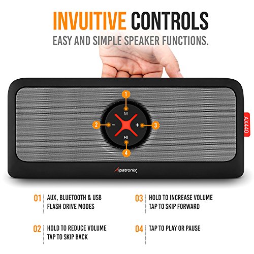 Bluetooth Speakers, Alpatronix [AX440] 30W Ultra Portable Bluetooth Wireless Stereo HD Speaker w/ Loud, Powerful Bass, USB Flash Drive Support & PowerBank Perfect for Beach, Pool, Golf & Home - Black