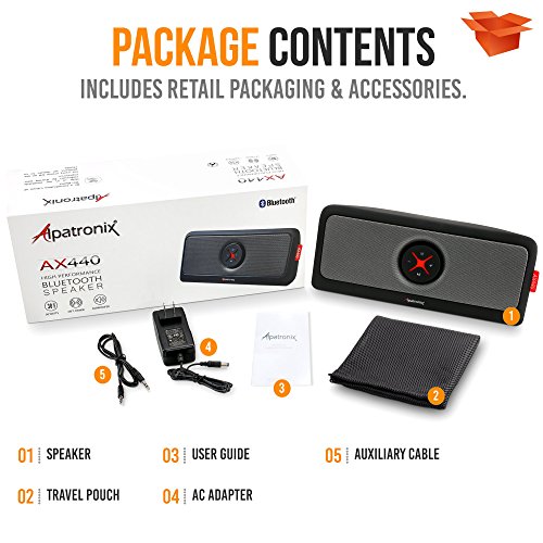 LONG-LASTING BATTERY: 5400mAh built-in rechargeable battery provides countless hours of music, quick charging power and 720 hours of standby time on Bluetooth. You can play up to 8 hours of music at full volume. The AX440 has enough power that the USB port can also be used as a power bank to charge your smartphone while playing music at the same time. ***IMPORTANT*** Original iPhone lightning cable is not compatible with the power bank feature.