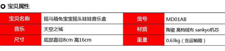 [Product Description]: rocking horse box doll music box! Workmanship, super Meng super cute! Small body of flannel clothes, feel comfortable, doll's head with the feet are made ​​of ceramic Oh! Lovely baby, eyes closed, dozing, pacifier hanging around his neck tighten it ... the music behind the spring, Music sounded around her upper body will lazily swinging!