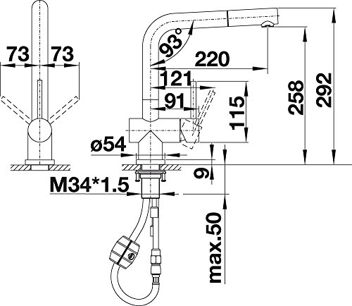 -. Feature : Ausziehbare Schlauchbrause / Hochdruck / Hahnlochbohrung mit Ø 35 mm erforderlich / BLANCO-Kartusche mit keramischen Dichtscheiben