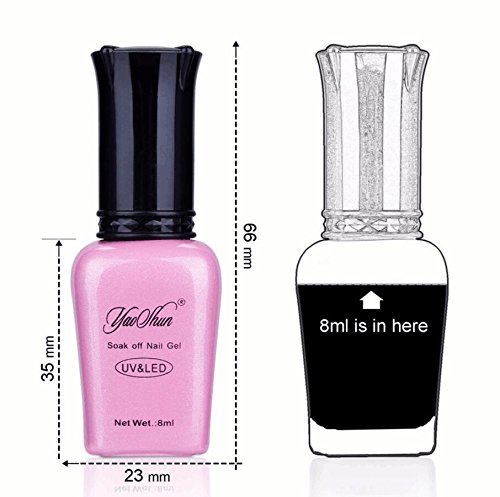 -. Binding : Misc. -. Brand : Yao Shun -. Feature : Includings:6 Multi-colors + 1 PC Top Coat + 1 PC Base Gel / These colors are well-selected from 300 Colors,every colors are excellent,no color difference. / NO HARM to skins and nails! NON-TOXIC and Harmless Resin, High Quality gel with Almost No Smell, Good Tenacity! / Yaoshun brand professional salon beauty shop or at home persoanl use. Suitable for natural nails, UV gel nails, false nails, acrylic nails, nail tips, etc. / Requires drying under UV/LED Lamp,good adhesion,no need to worry it will be peeled or chipped. -. Label : Guangzhou Yaoshun Cosmetics Co,Ltd -. Manufacturer : Guangzhou Yaoshun Cosmetics Co,Ltd -. MPN : YSHGPS080000a-8US_FBA -. PartNumber : YSHGPS080000a-8US_FBA -. ProductGroup : Beauty -. ProductTypeName : BEAUTY -. Publisher : Guangzhou Yaoshun Cosmetics Co,Ltd -. Studio : Guangzhou Yaoshun Cosmetics Co,Ltd -. Title : Yaoshun Soak Off Gel Nail Polish 8 Pcs/Lot Top Coat Base Coat UV Gel Polish Colors Kit #001