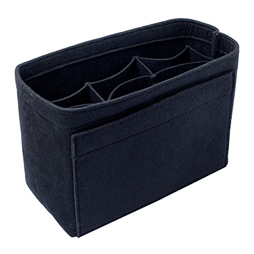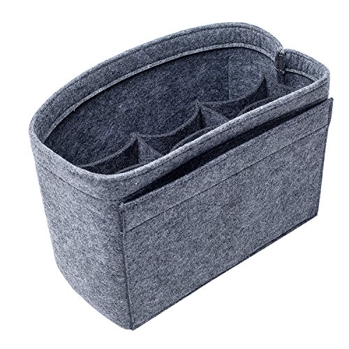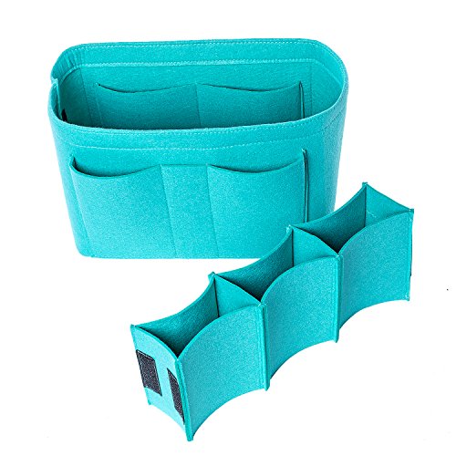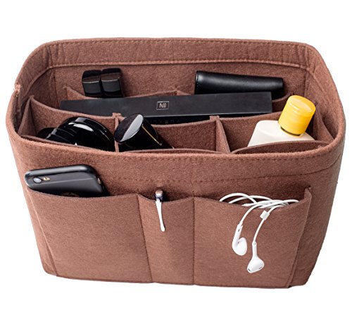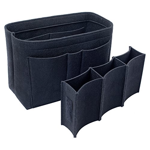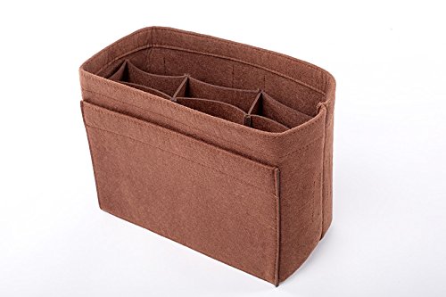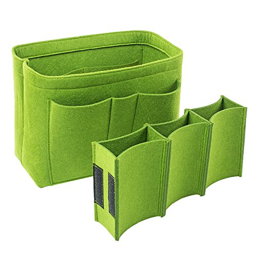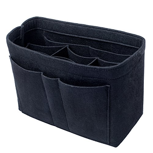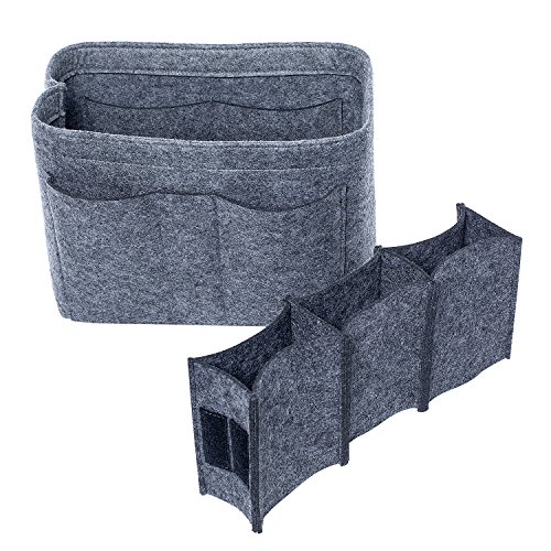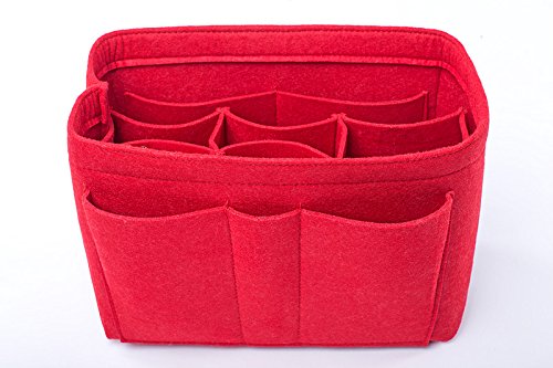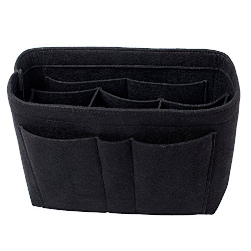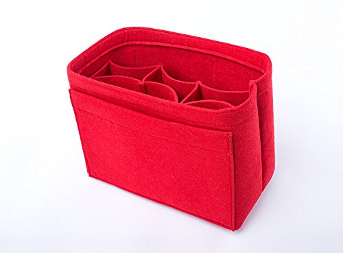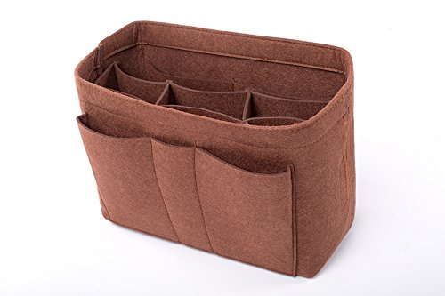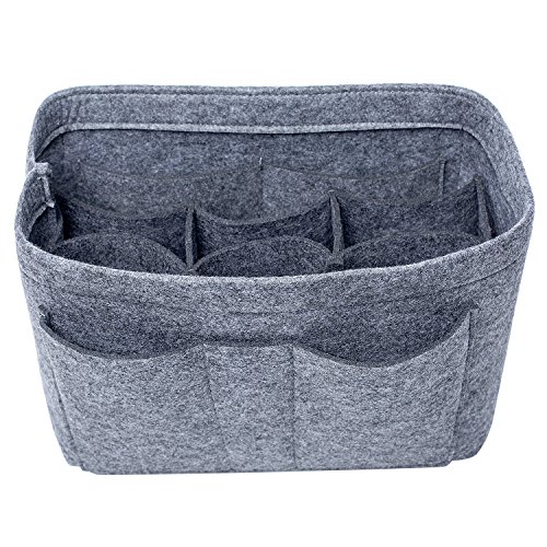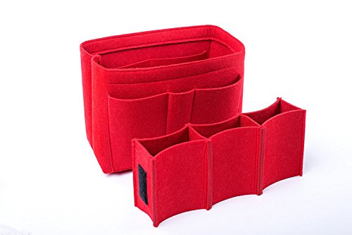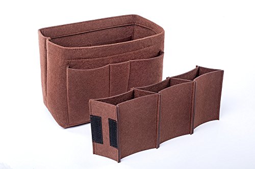 Well-made felt purse organizer The material (felt) is very thick and sturdy Multiple pockets for different items Attached with Velcro: middle section can be removable Space is distributed proportionally and evenly Comes with different sizes for specific bags