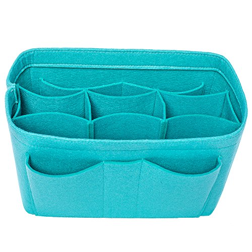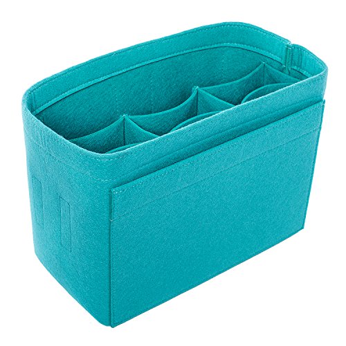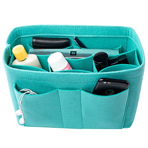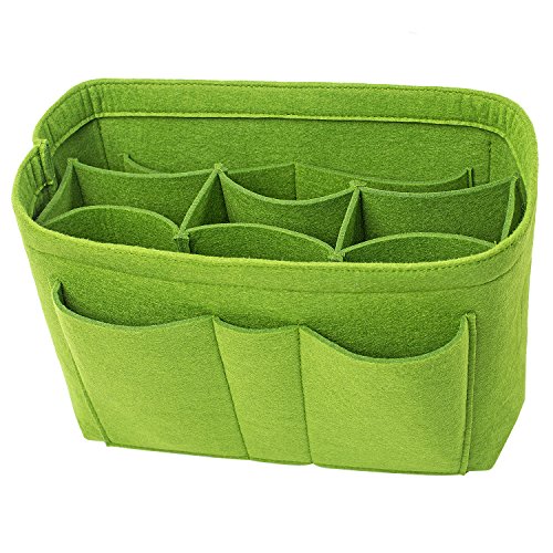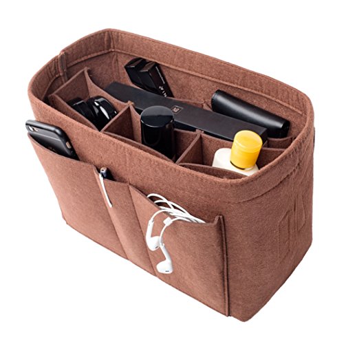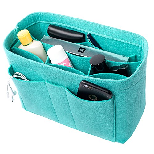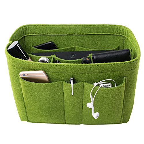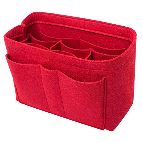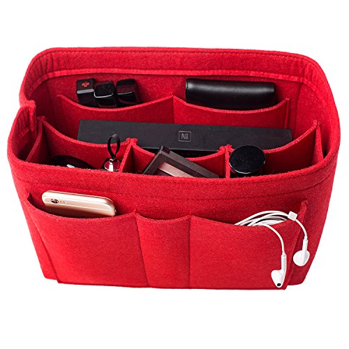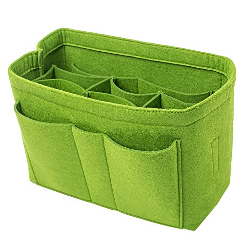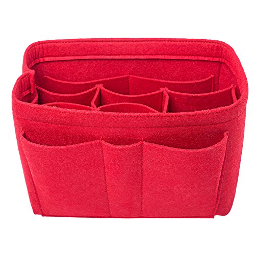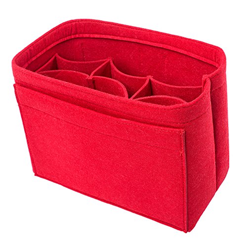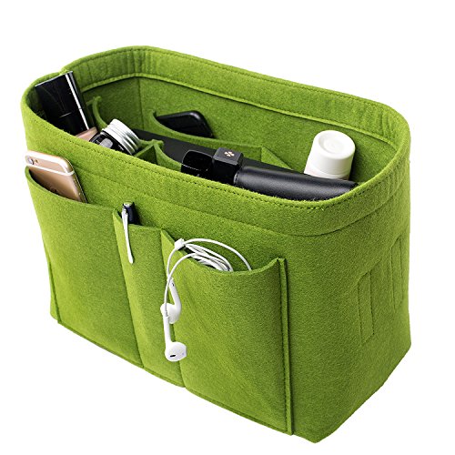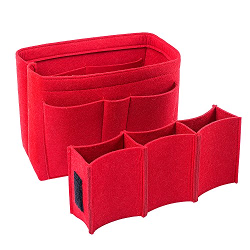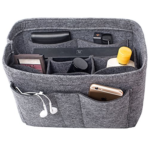 Well-made felt purse organizer The material (felt) is very thick and sturdy Multiple pockets for different items Attached with Velcro: middle section can be removable Space is distributed proportionally and evenly Comes with different sizes for specific bags