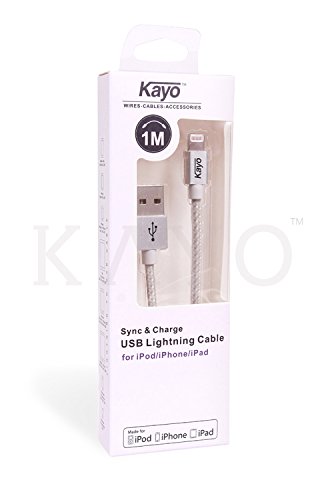 KAYO Cable is an Apple MFi certified Lightning braided cable - Built with genuine Lightning connector from Apple and Aluminum housings on both ends; Reversible design on Apple 8-pin Lightning connector. Apple MFi certification ensures complete charge and sync compatibility with iPhone 7 Plus / 7 / 6s Plus / 6s / 6 Plus / 6 / 5s / 5c / 5 / iPad Pro / iPad Air / Air 2 / iPad mini / mini 2 / mini 4 / iPad 4th gen / iPod Touch 5th gen / iPod nano 7th gen and Beats Pill+