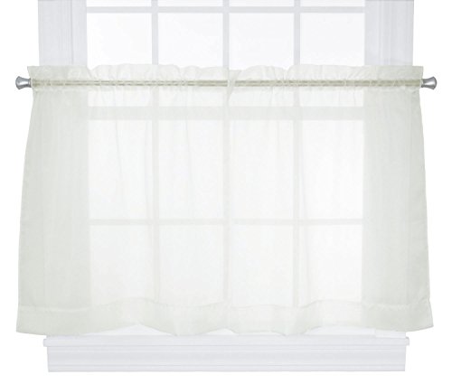 Ellis Curtain Jessica Sheer 54-by-24 Inch Tailored Tier Curtains-The Jessica Sheer Curtains are the perfect answer to dress up your windows. Made with Dacron Ninon fabric gives them a tight smooth weave and mesh-like appearance that will soften the look and feel of any room. They give the feeling of intimacy and privacy but still allow in light. They are wonderful to use alone or along with your other window treatments. Tailored Tier curtains are used to cover the lower portion of your windows or used alone on shorter length windows. They are commonly used in bathrooms, bedrooms, kitchens or any other windows where privacy is wanted. The 100-percent polyester fabric creates a smooth draping effect and easy maintenance. Each curtain panel is constructed with a 1.5-inch rod pocket, 1.5-inch header and 3-inch bottom hem. Sold in pairs (2 Panels) Width is measured overall 54-Inch per pair of panels (both 27-inch panels together) Length is measured overall 24-Inch from header top (ruffle above the rod pocket) to bottom of panel. Machine wash in cold water, tumble-dry on delicate cycle. Jessica Sheer Ruffled Curtain Panels, Valance and Swags also available thru Amazon.Feature
