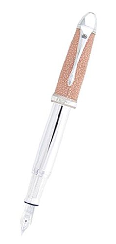 -. Feature : 18K gold nib / Pink colored stingray seamlessly wrapped around the cap / The pebbly quality of the genuine stingray cap resembles tiny clusters of pearls / 925 sterling silver barrel / Precious stones encircle the base of the cap and adorn its top