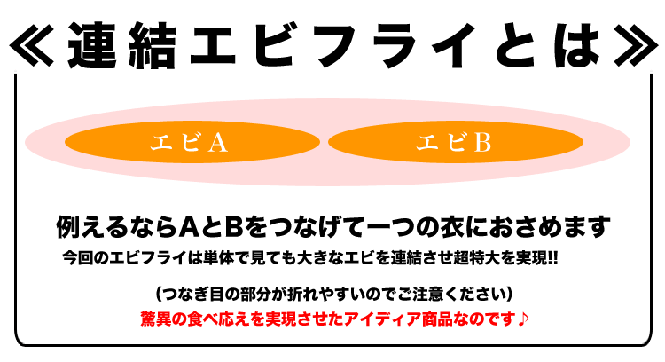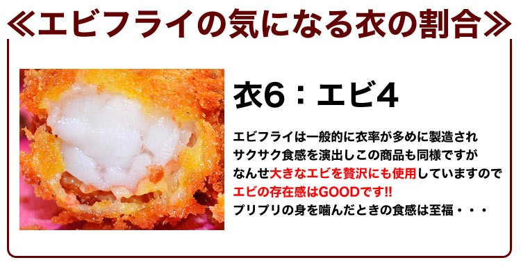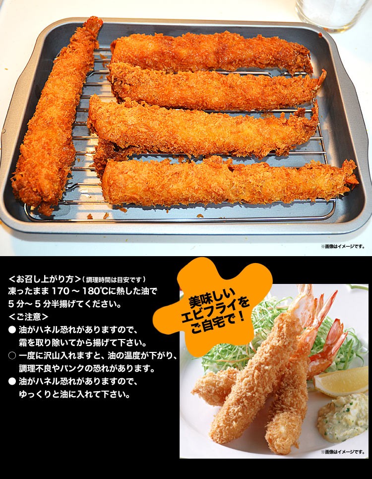 特大えびフライ バナメイ 5尾(冷凍食品)■原材料名:衣(パン粉、小麦粉、食塩、植物油脂、小麦たん白) えび(バナメイ)、食塩/加工デンプン、焼成Ca、 アナトー色素、調味料(アミノ酸)、膨脹剤、 pH調整剤、香辛料抽出物商品ロットや製造元次第で記載内容が変動する場合がございますので商品ラベル記載をご確認ください。■原産国名:ベトナム、タイ、インド、インドネシア等 ■衣の率:60%(衣6:エビ4)サクサク食感とエビの存在感もGOOD!■内容量:500g(5本入/1本あたり約100g前後)※冷凍時の重量■賞味期限・冷凍:パッケージ記載・冷蔵:約1(当日)~2日※開封後はお早めにお召し上がりください。■保存方法:-18度以下で保存してください。■加熱してお召し上がりください。※ただし過度な加熱は肉質が堅くなる原因となるのでご注意ください。■連結エビフライとは複数のエビを使用して一つの衣に収めて製造されたエビフライ■冷凍発送エビ 海老 お弁当 フライ おやつ 年末 年越し 進学祝い お中元 お歳暮 年賀 忘年会 新年会 内祝い 暑中見舞い お年賀 御礼 お礼 誕生日 クリスマス パーティ ゴルフコンペ 贈答 贈り物 ギフト 爆買い