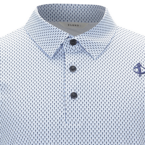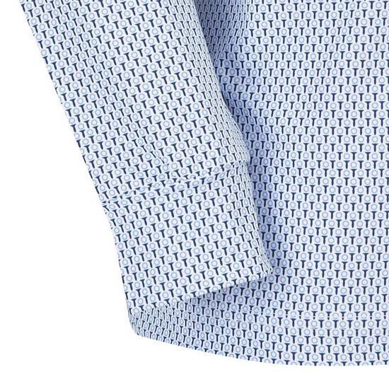 - 올오버 프린트 패턴을 적용한 남성 티셔츠.