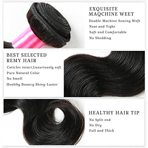 4 Bundles Brazilian Virgin Hair Body Wave PLADIO Unprocessed Virgin Brazilian Hair 100% Human Hair Extensions Body Wave (14 16 18 20, Natural Color)