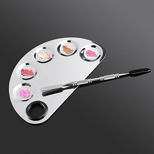 -. Title : Makeup Palette Makeup Nail-art Manicure Artist Tool Stainless Steel Cosmetic Palette with Spatula Tool