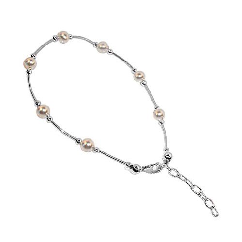 -. Title : 925 Sterling Silver Pearl Crystal 9 to 10 inch Length Adjustable Anklet Made with Swarovski Elements