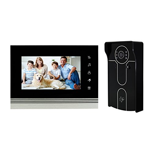-. Feature : 7 inch TFT 16:9 color LCD display monitor and 6 pcs IR lights supports see and speak with all visitors; IR (infrared) LED projection provides clear vision of visitors even in the darkness of night / Thin design of Indoor monitor has with aluminum alloy shell acrylic panel, which also with Little rain and oxidation-proof protects from the elements / Comes with 4 RFID key fobs, one add card, one delete card, two ID card / Ringback function: an audible indication what is heard on the outdoor monitor when the guest pressing the doorbell,the sound like"du du" / Hands-free intercom; Electronic control lock; Outdoor monitoring; Support add up to 500 ID cards