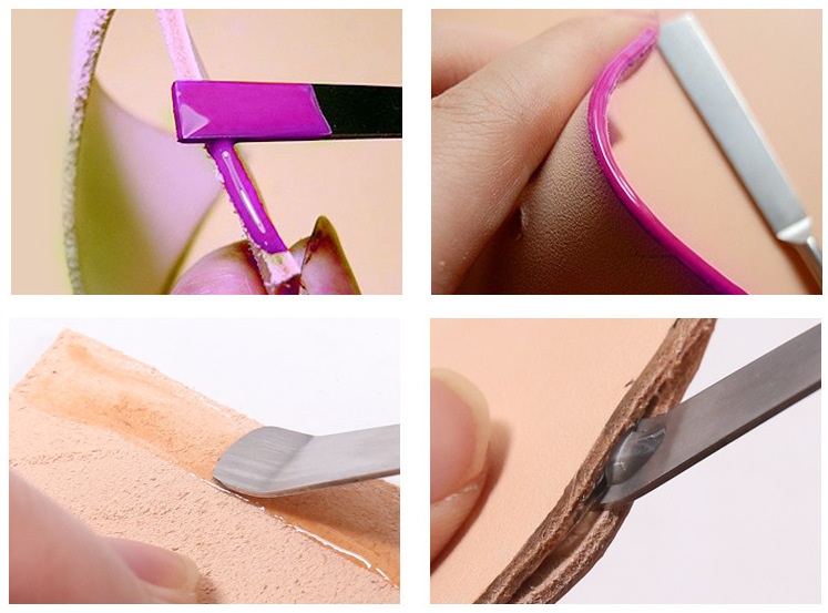 ・ヘラでコバのワックスをならすことで丁寧なコバ塗りができます。レザークラフトや模型作り、手芸などで繊細な部分の接着やニス塗りをするときに重宝します。