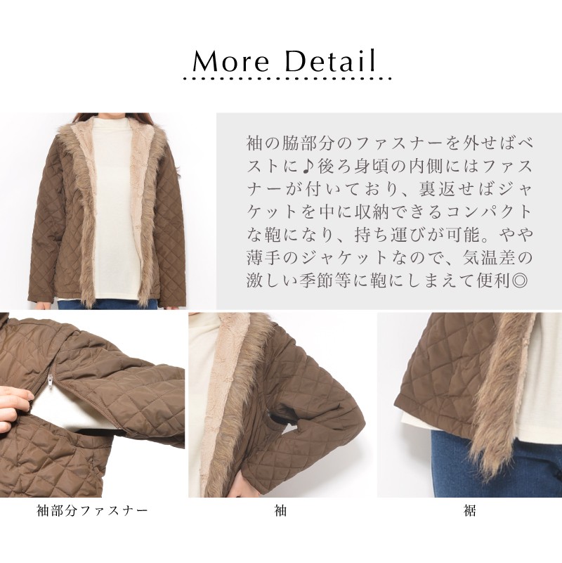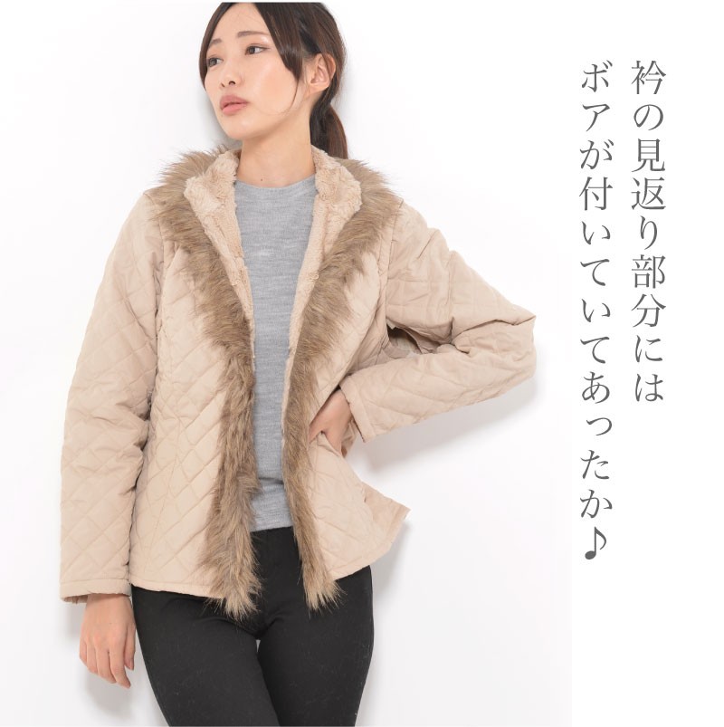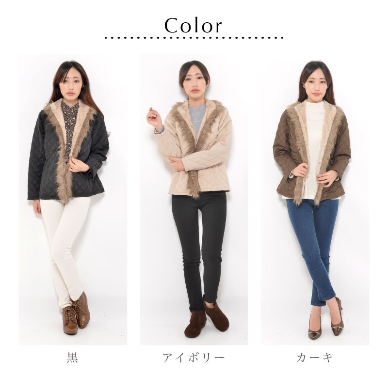 衿から裾部分までファーが付いており、衿の見返り部分にはボアが付いていてあったか♪