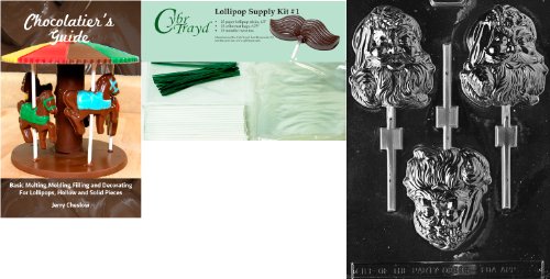 Cybrtrayd Large Santa Pop Chocolate Mold with Chocolatier's Bundle of 25 Lollipop Sticks, 25 Cello Bags, 25 Green Twist Ties and Chocolatier's Guide