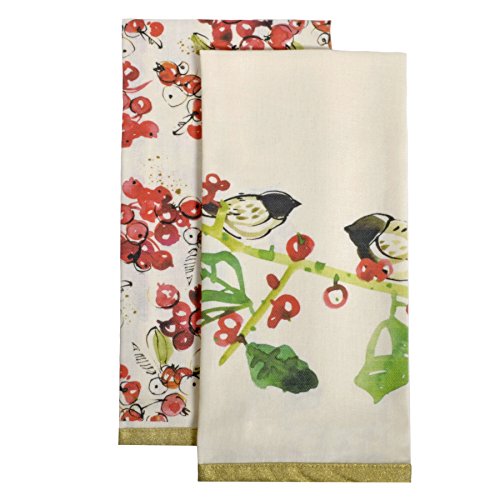 - Set of 2 coordinated kitchen towels with artistic watercolor graphics