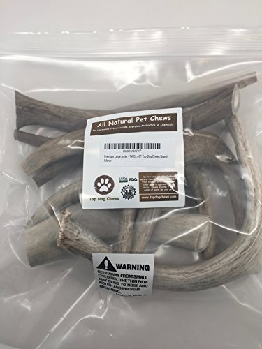 -. Binding : Misc. -. Brand : Top Dog Chews -. EAN : 0859191005567 -. Feature : Approximately 2lb bag of antler chews for dogs filled with marrow / Derived from free-range North American Elk, Moose and Deer / No Pieces Under 6"! / No preservatives, chemicals or bleaches / Antler sizes vary by shape, color and size. Antlers based on weight. -. Label : Top Dog Chews -. Manufacturer : Top Dog Chews -. MPN : TDC_Antler_2LB -. PackageQuantity : 1 -. PartNumber : TDC_Antler_2LB -. ProductGroup : Pet Products -. ProductTypeName : PET_SUPPLIES -. Publisher : Top Dog Chews -. Studio : Top Dog Chews -. Title : Premium Large Antler - TWO POUNDS (+/- an ounce or two) Variety Pack! No Pieces Under 6"! Top Dog Chews Brand! -. UPC : 859191005567