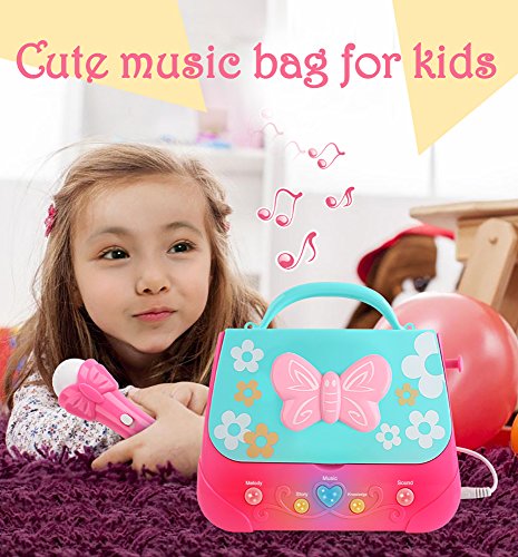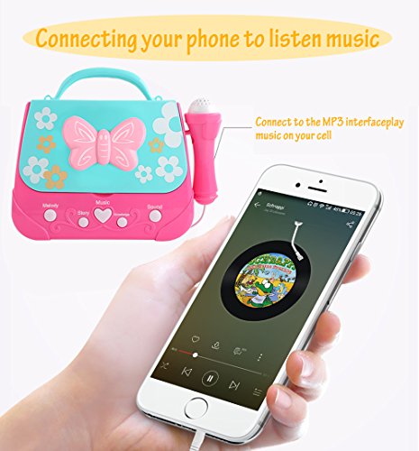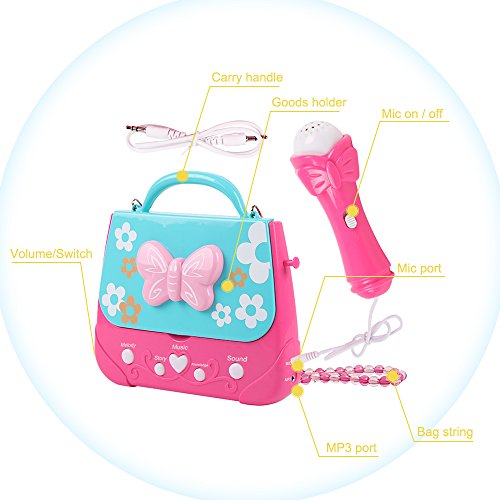 Looking for that perfect gift for the precious little girl in your life? Music builds confidence, improves brain function, and helps children express themselves. This Karaoke Player, a fun, charming musical toy geared for little girls that love to sing! FEATURES: ♬Sing-Along Mic with option to turn ON/OFF ♬10 Built-In Songs & Story she'll love to listen to ♬AUX Input with AUX cable included ♬iPod Dock for more music play options ♬Portable Design easy to take along anywhere ♬Colorful Lighteffects create an exciting atmosphere for your star! With our 100% Customer Satisfaction Guarantee, you've got nothing to lose! Click "Add to Cart" now for a purchase worth making!Feature