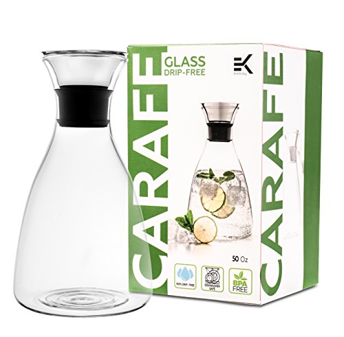 Studio : EeKay Wares Publisher : EeKay Wares Product Description Drip-free, Hot Cold Carafe by EeKay Wares. EeKay's drip-free, hot and cold carafe is the perfect pitcher for decanting, serving wine, juice, tea or coffee. Completely shatterproof, and BPA free, it is made from heat-resistant glass, allowing you to use it for both hot and cold drinks. The versatile minimalistic design, makes it the perfect addition to any occasion. . Designed for lifetime durability, the EeKay Wares Carafe is made of heat-resistant, lightweight, borosilicate glass to enhance your entire drinking experience. Taste your drink in its purest, most refreshing form. 0