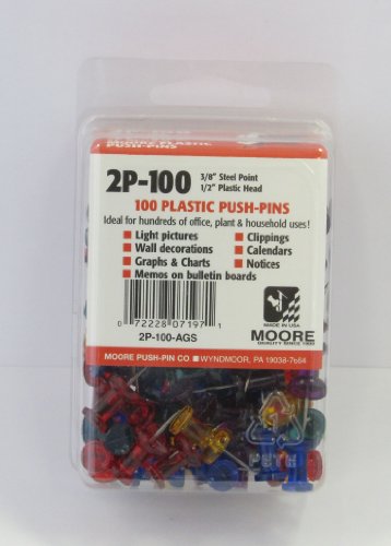 Moore Plastic Head Push Pin, Gem Stone, 100 Per Box (2P-100-AGS)