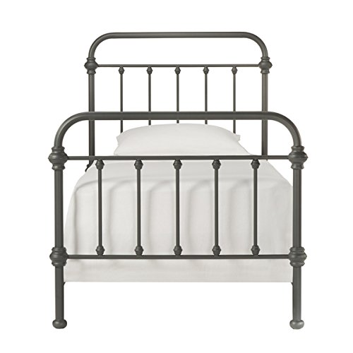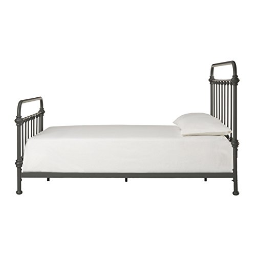 - Feature : Set includes: One (1) headboard, one (1) footboard, one (1) set of rails, three (3) metal slats / Materials: Iron tube & iron panel with a dark gray finish; 7 spindles / Designed for use with box spring / Under Slat Clearance: 6.65 inches / Overall Dimensions: 51.5 inches high x 87.25 inches long x 64.5 inches wide
