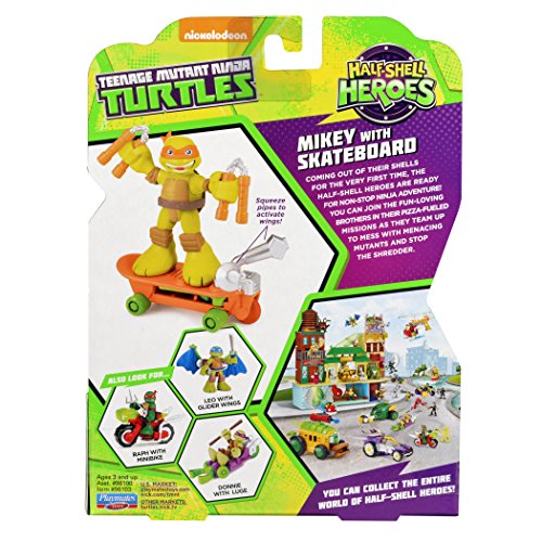 -. Binding : Toy -. Brand : Teenage Mutant Ninja Turtles -. EAN : 0043377961031 -. Edition : 1st -. Feature : Young heroes will enjoy recreating Turtle adventures of inventing their own - controlling the action as imaginations soar in a world of heroes and mutants, adversaries and allies It's a new adventure every time you play Turtle Power! / You can collect the entire world of Half-Shell Heroes / Try Me package / 2012 Viacom International Inc. All Rights Reserved TEENAGE MUTANT NINJA TURTLES and all related titles, logos and characters are trademarks of Viacom International Inc. -. IsAdultProduct : 0 -. ItemPartNumber : 96103 -. Label : Playmates - Toys -. Manufacturer : Playmates - Toys -. Model : 96103 -. MPN : 96103 -. PackageQuantity : 1 -. PartNumber : 96103 -. ProductGroup : Toy -. ProductTypeName : TOYS_AND_GAMES -. Publisher : Playmates - Toys -. Studio : Playmates - Toys -. Title : Teenage Mutant Ninja Turtles Pre-Cool Half Shell Heroes Michelangelo with Skateboard Figure -. UPC : 043377961031 -. Warranty : No Warranty