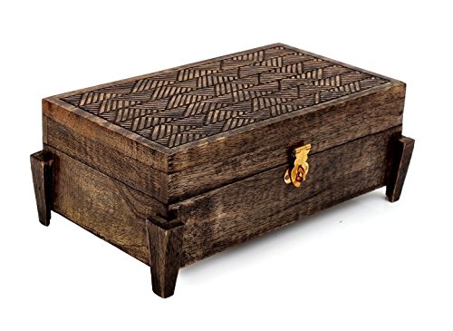 - DESIGN: This organizer comes with a raw distressed finish and has a secure sturdy brass latch and miniature supports at the four corners. Made to perfection by Indian artists using vintage craft skills.