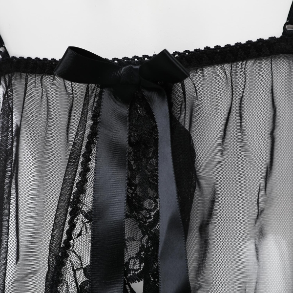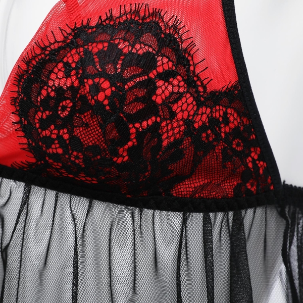 레드와 블랙의 컬러매치가 화려한 디자인의 슬립. 목부분의 레이스가 포인트이며, 리본으로 묶는 홀터넥스타일로 가슴라인을 부각시키며,