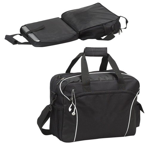 -. Feature : 16"L x 12"H x 6"D • Made of 600D polyester / Padded sleeve to accommodate the laptop • Unzip flat to expedite airport security check-in / Front zip organized pocket • A separate compartment for documents / Side mesh for water bottle and side flap pocket for smart phone • Earphone outlet for mp3 / Dual grab handle • Adjustable and detachable shoulder strap