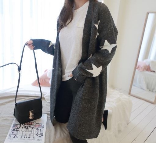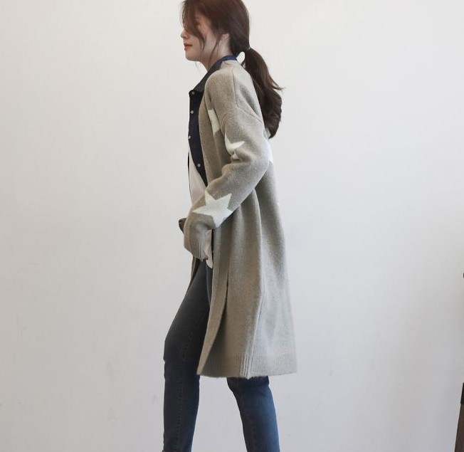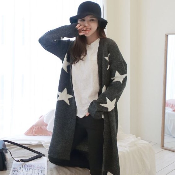 遊び心のある星柄をあしらったロングカーディガン。