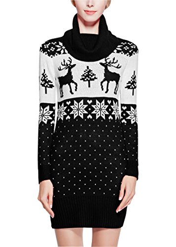 V28®Women Christmas Cowl Crew Neck Ugly Reindeer Santa Suit Sweater Jumper Dress