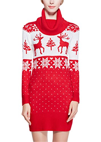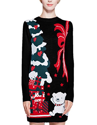 V28 Women Christmas Cowl Crew Neck Ugly Reindeer Santa Suit Sweater Jumper Dress (M, Little Bear Red)