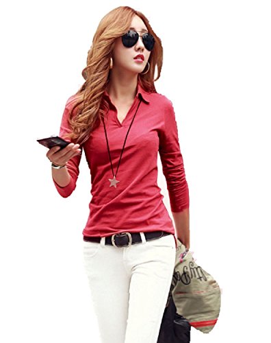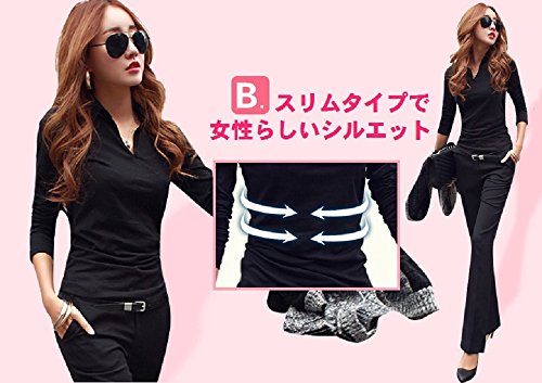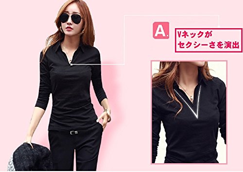 -. Title : ロイヤルパイン(Royal Pine) Vネック 衿付き 美ライン 長袖 Tシャツ カットソー ポロシャツ レディース 4色 4サイズ