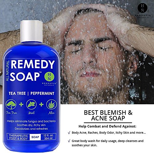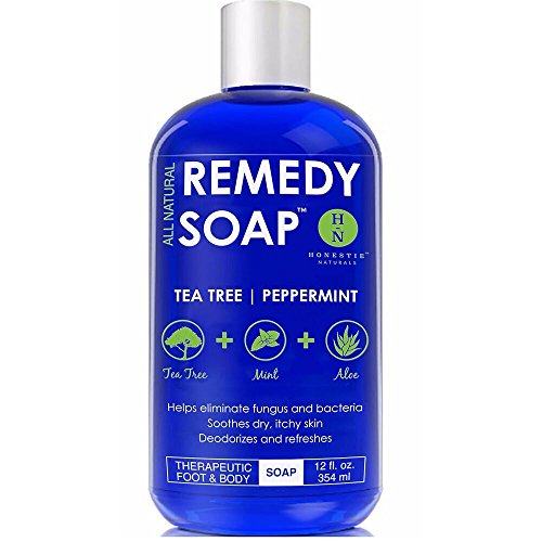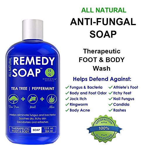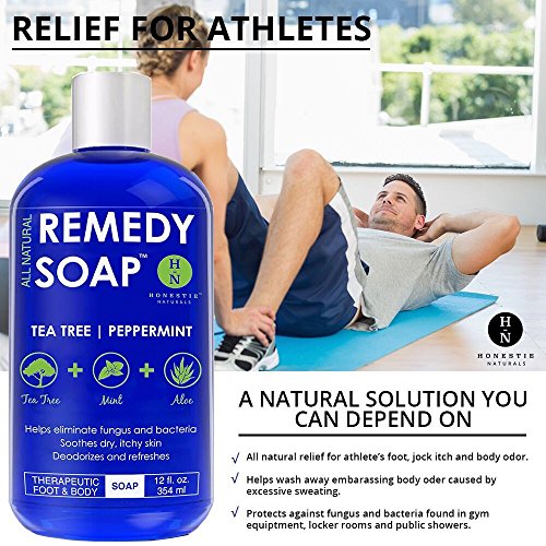 - ★ ANTIFUNGAL SOAP New Large 12 oz Size. Remedy Wash Antifungal Soap with Tea Tree Oil, Mint & Aloe Vera - Helps Wash Away Body Odor, Athlete's Foot, Nail Fungus, Candida, Ringworm, Jock Itch, Yeast Infections and Skin Irritations. Very refreshing 100% All Natural Foot and Body Wash.