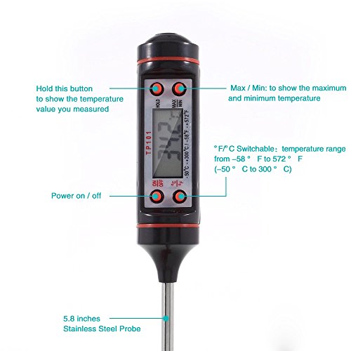 2 Pack Digital Meat Thermometer Probe Instant Read Cooking Kitchen Thermometer for BBQ, Grilling, Liquids, Smoker, Gas Grill, Milk and Bath Water