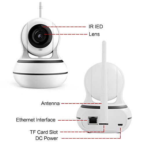 -. Feature : SAFETY - keep your family, business and belongings safe with our top of the range wireless security cameras which link wirelessly with your phone so you have an active, real-time view day or night, when you need it most / EASY - with our handy App, using our camera is super easy, there are 3 set up options including Smart Link, QR Code or LAN so you can have a wireless stream in a very short space of time, direct to your phone. Full instructions are included with every purchase / MOTION DETECTION - receive alerts to your smartphone when the camera detects movement, view the alerts via snapshots. Perfect when using as a baby monitor or nanny cam or as a standard security camera / TWO WAY AUDIO - check on your family, child or pet with the two-way audio function, read your child a bedtime story or reassure a lonely pet wherever you are in the world / NIGHT VISION - perfectly functional anytime of the day or night thanks to the infrared night vision which runs automatically with a range of up to 8m. The tilt and pan function will give you a wide coverage of your chosen area for your peace of mind
