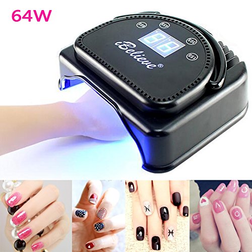 Studio : Babypanda Publisher : Babypanda Binding : Misc. Product Description Discription: 64W super power nail machine,Environmental protection, light use of imported LED, non-harmful substances to the human body. Touch timing button,Touch screen can chose 15s/30s/45s/60s, according to your choice for nail gel Advanced LCD Display,Quick-drying: 5-10 times faster than conventional phototherapy lamp Come With a light hand and a Nail nipper,Light weight, small size, convenient operation, quick and flexible switch, long life makes it so popular around the world. 32PCS Powerful Led,curing LED GEL faster.Strong metal cover,best for dissipate heat Product Features: Great excellent quality for nail job Small and better design, compact easy to operate Suitable for :both professional personal finger nail, toe care uses Weight: 2.7kg Power Consume: 64W Voltage: 100V-240V Color:Black Light Source:16Pcs 365nm CCFL 16Pcs 395nm LED Life Span:50000H Function:Cure UV and LED Gel Timing:15s/30s/45s/60s Shell:Zinc Alloy Shell Package Included 1 x 64W UV Nail Dry Polish Lamp adapter manual