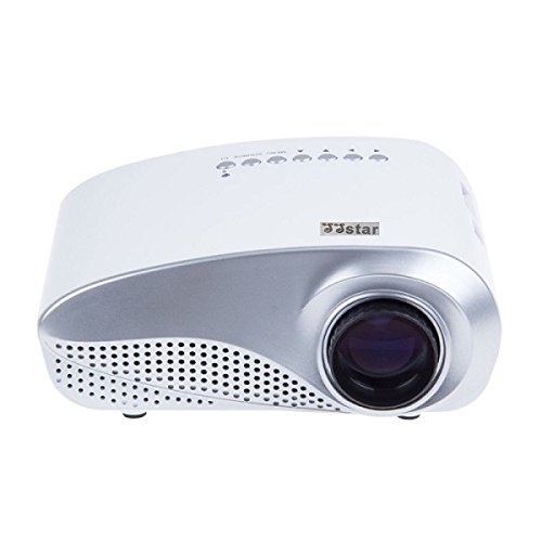 -. Feature : VGA/HDMI/AV/SD/USB multimedia interface. You can use it on every digital device you own i.e. DVD player, laptop computer, TV set-top box, gaming console, etc / Native resolution of 480 x 320. Supports up to 1080p, contrast 1000:1, capable for variety daily use, i.e. watching movies or playing games, etc. / Speakers built-in projector,no need connect with any extra speakers. / USB and SD card direct play: most convenient to share files, video or pictures with your mates. / Small size and light weight, easy to carry.