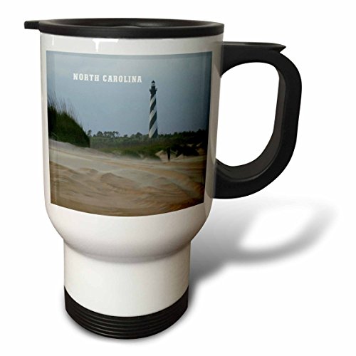 3dRose tm_80422_1 View of Cape Hatteras Lighthouse on Outer Banks Travel Mug, 14-Ounce, Stainless Steel