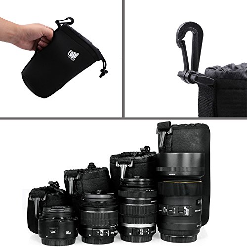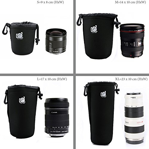 The LightDow® lens pouch are soft neoprene bags to store, carry, and protect your lenses, ballheads, and other incidental camera equipment within a size range from S to XL during travel and transport in the field.