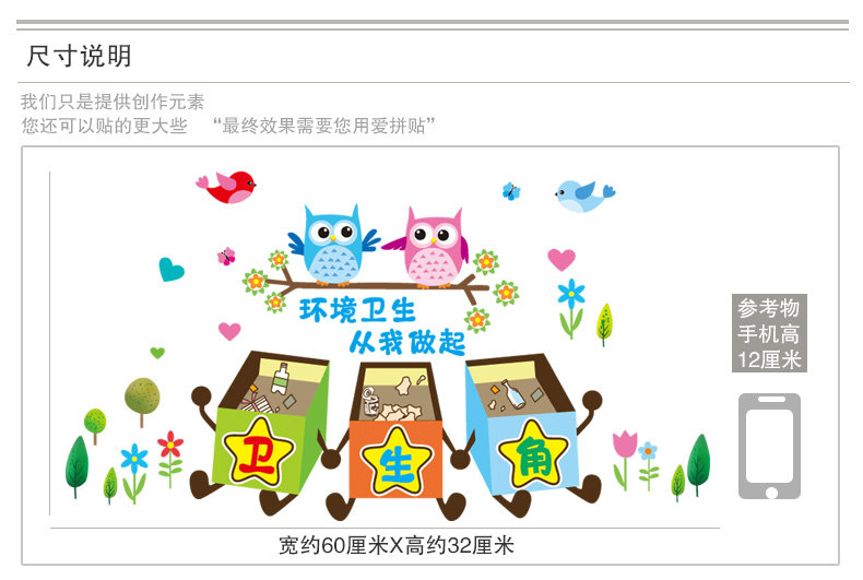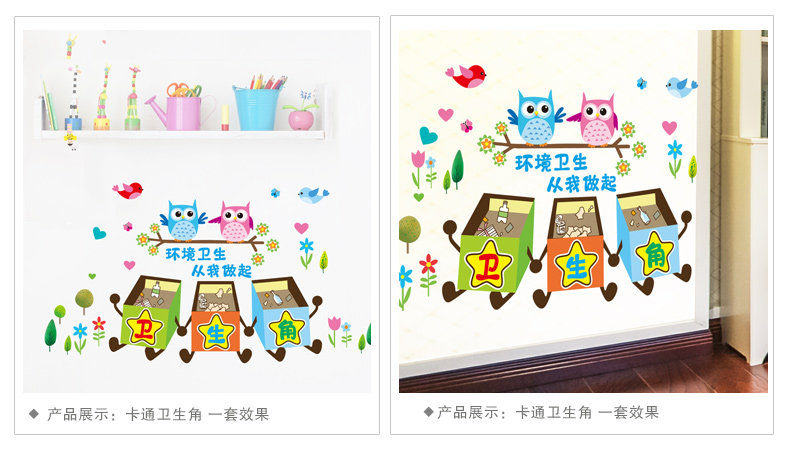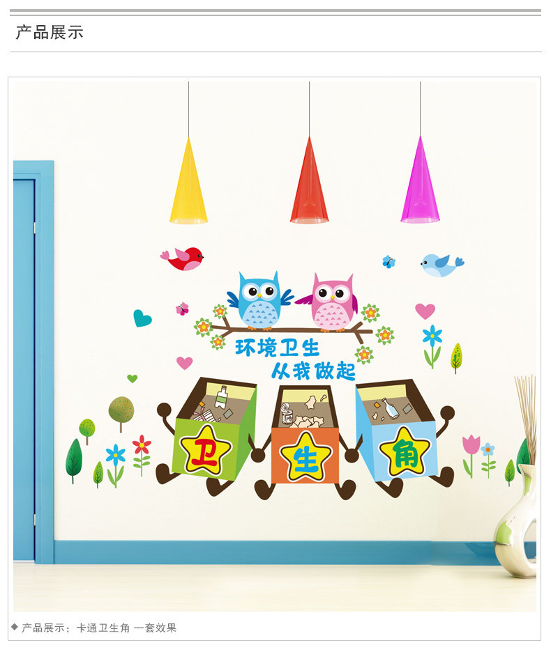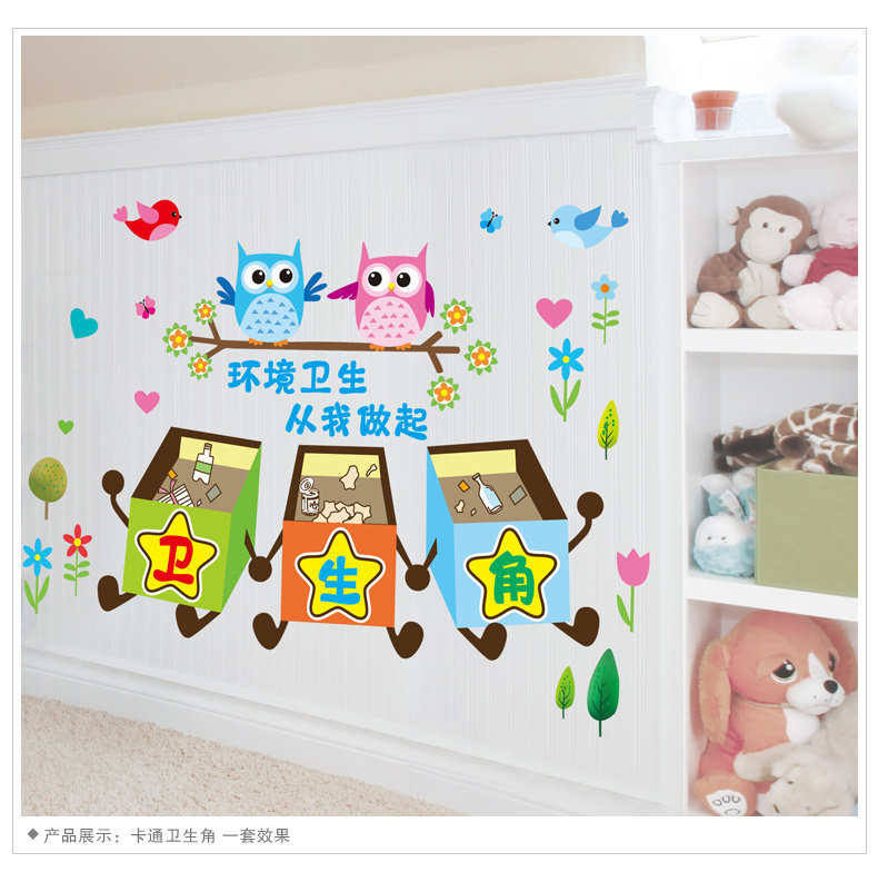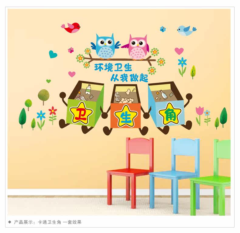 卡通教室布置幼儿园墙面装饰品墙贴画小学卫生角提示壁纸墙纸贴纸