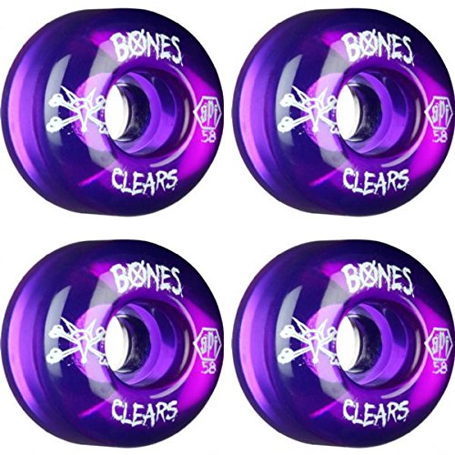Studio : Universo Extremo Boards Publisher : Universo Extremo Boards Product Description Bones Wheels SPF Clears 58mm Clear Purple Skateboard Wheels (Set of 4) ? Brand: Bones Wheels ? Wheel Size: 58mm