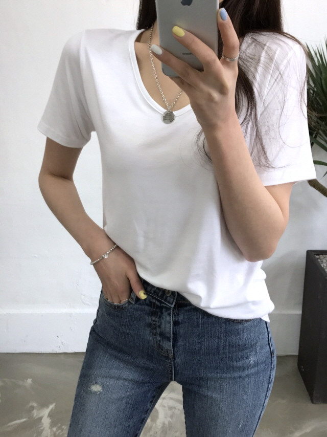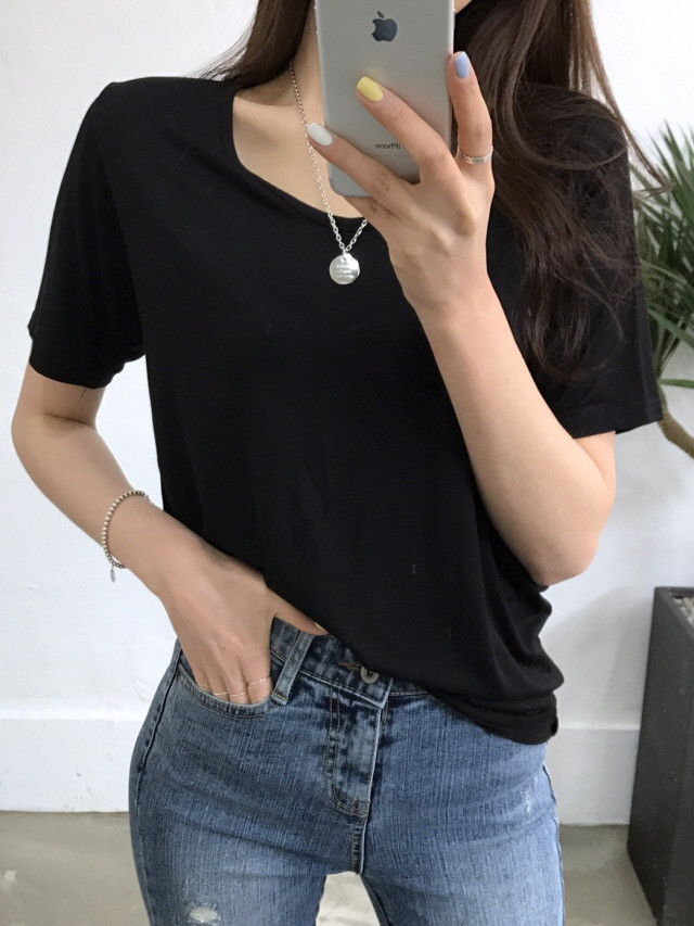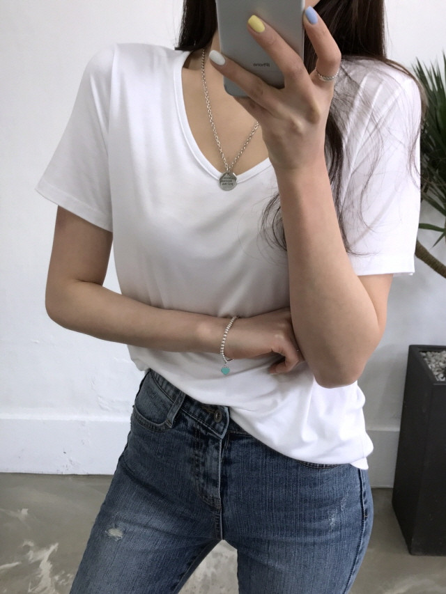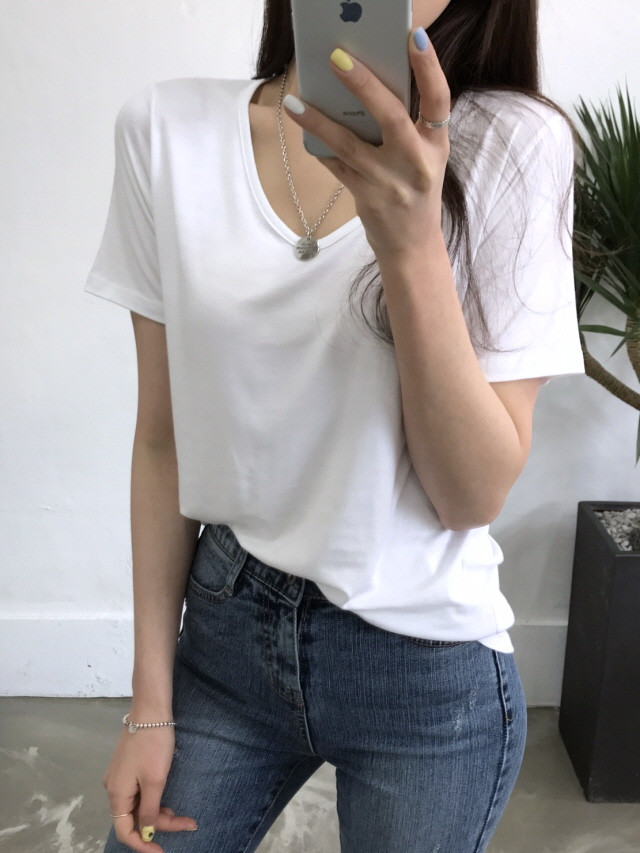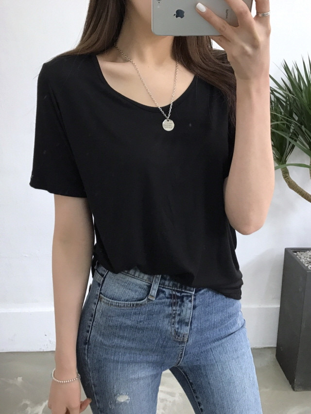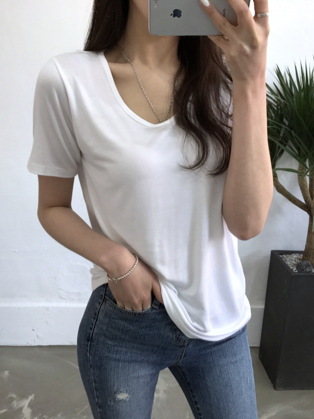 VのようなVのないラウンドティーに