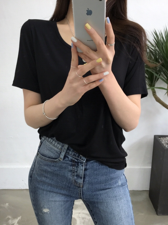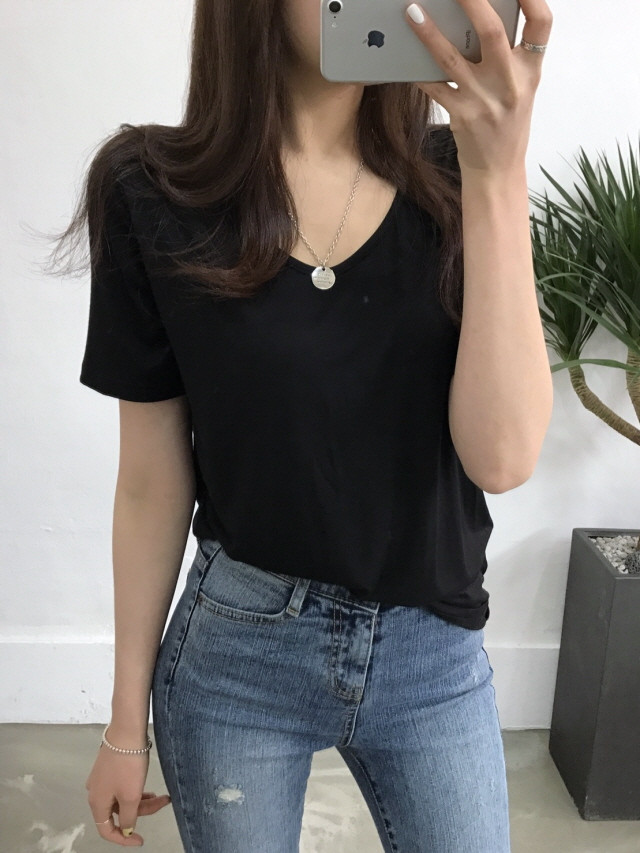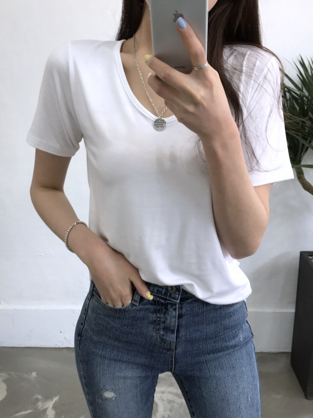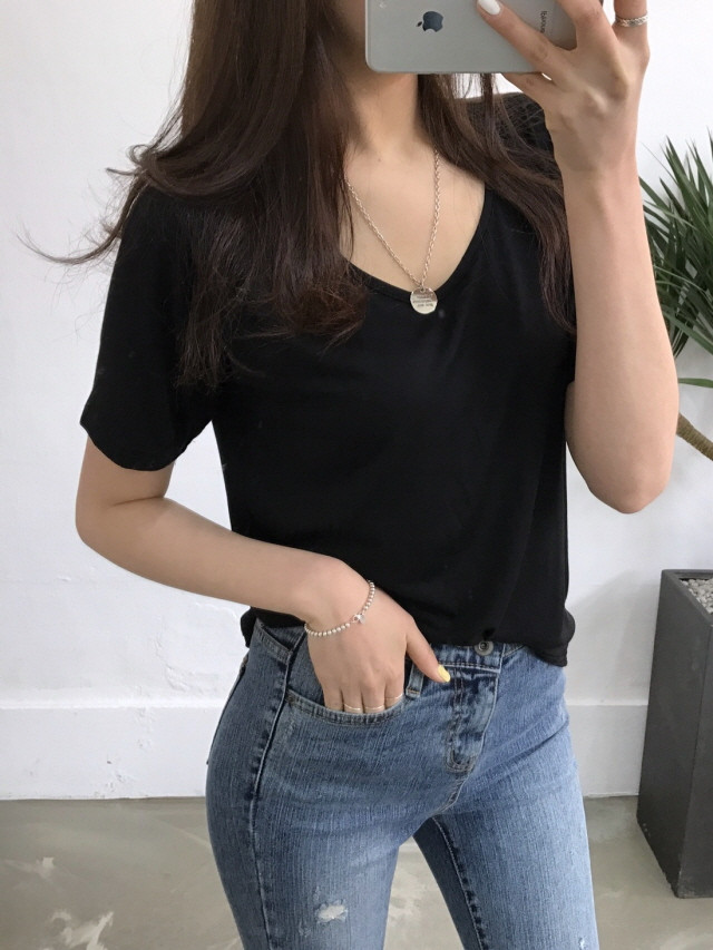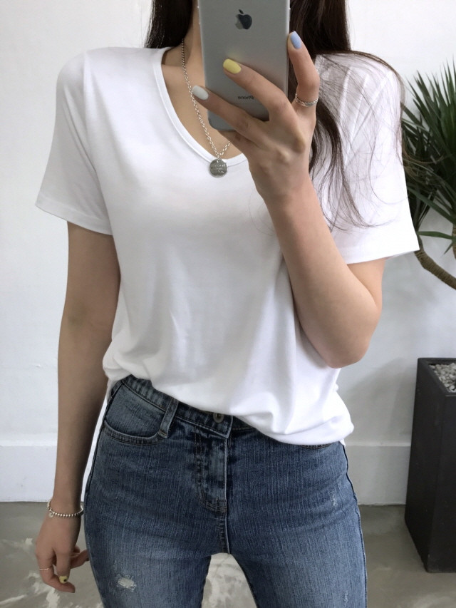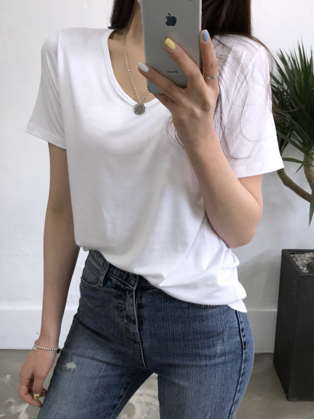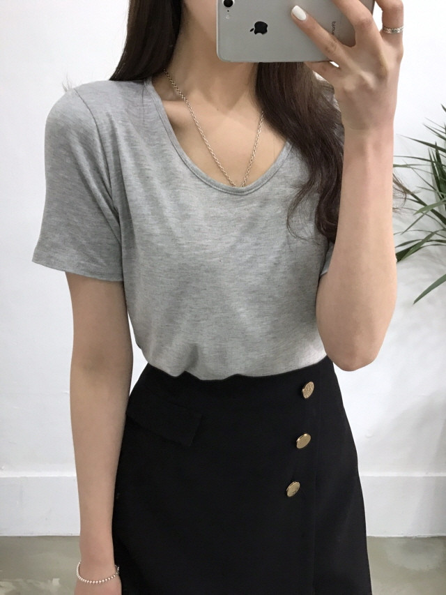 VのようなVのないラウンドティーに