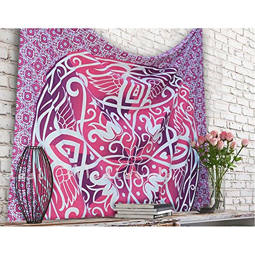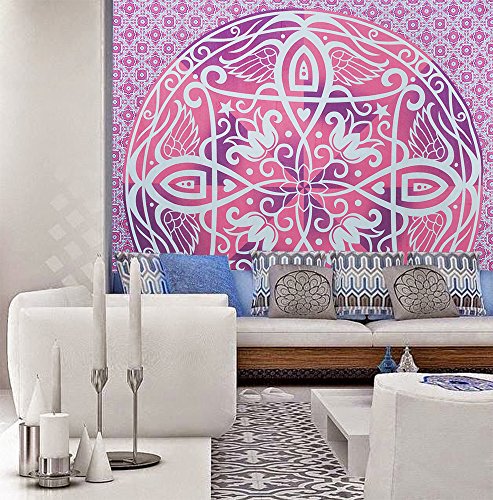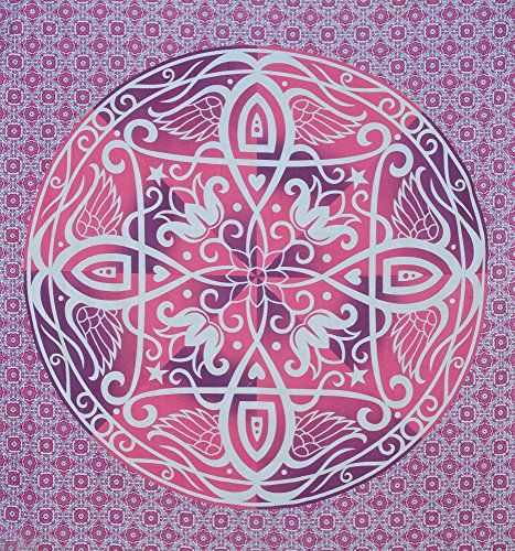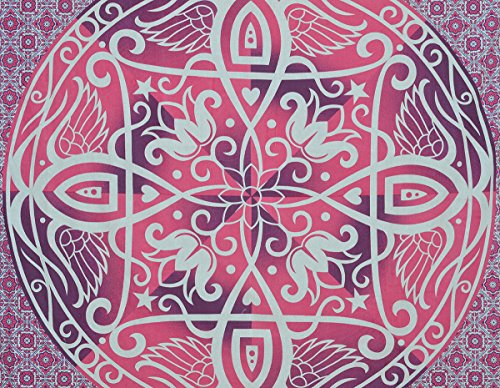 Popular Handicrafts Ombre Hippie Mandala Bohemian Psychedelic Intricate Floral Design Indian Bedspread Magical Thinking Tapestry 84x90 Inches,(215x230cms) Pink Purple
