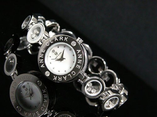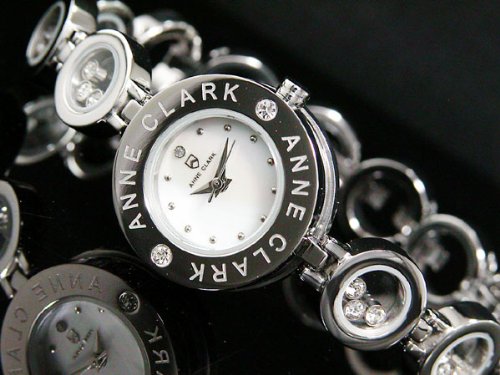 -. Feature : Anne Clark アンクラーク USA / 日常生活防水、天然ダイヤ×1石(12時位置)、ベゼル部:2Pジルコニア、ブレス部:ムーヴィングジルコニア、マザーオブパール文字盤 / (H×W×D) 約23×23×9mm / ステンレス / 専用ケース、ギャランティーカード