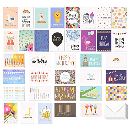 Studio : Juvale Publisher : Juvale Binding : Office Product Product Description This assorted pack of 36 greeting cards will prepare you for all your card-sending needs! Cut the hassle of rushing to the store and overpaying for cards. This pack consists of 36 greeting cards to include your very own custom messages for corporate and personal use. Make a statement with these cards made of high-quality, matte card stock that feels thick and sturdy. Each card measures at 4 x 6 inches and comes with corresponding envelopes. Ensure you have plenty of greeting cards on hand for when occasions arise. 0