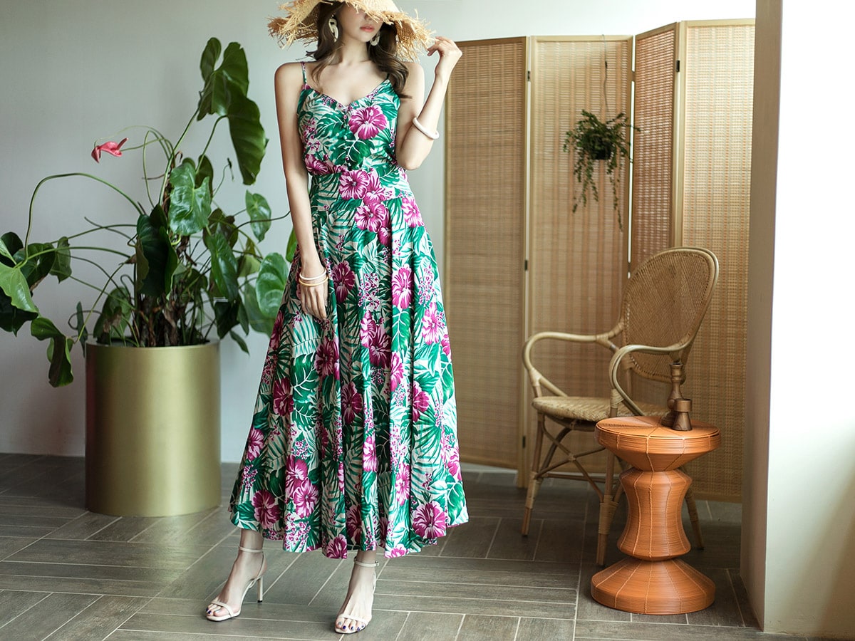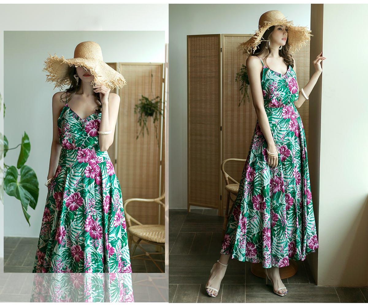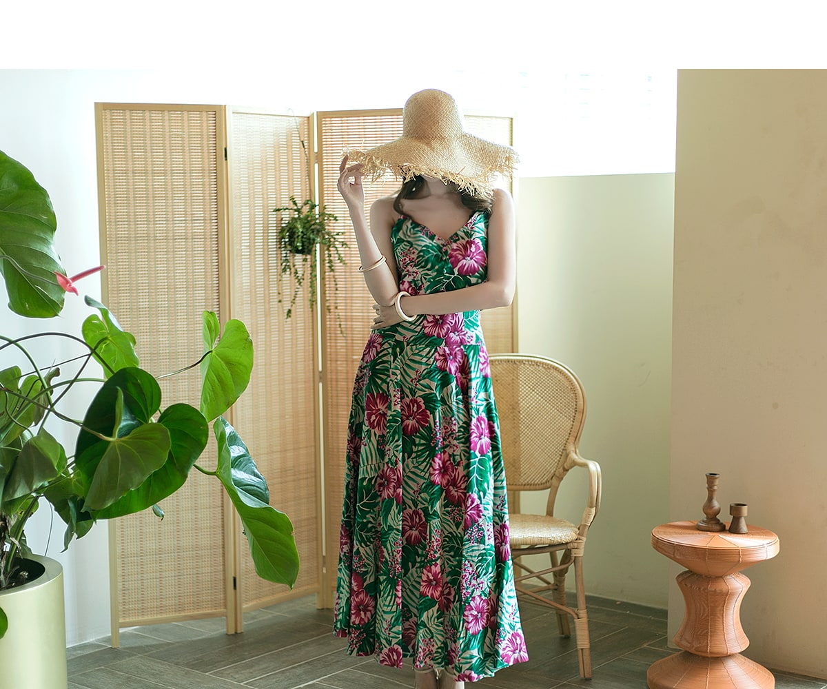 SK1738 리프 네이처 린넨 롱 스커트 Beige mix