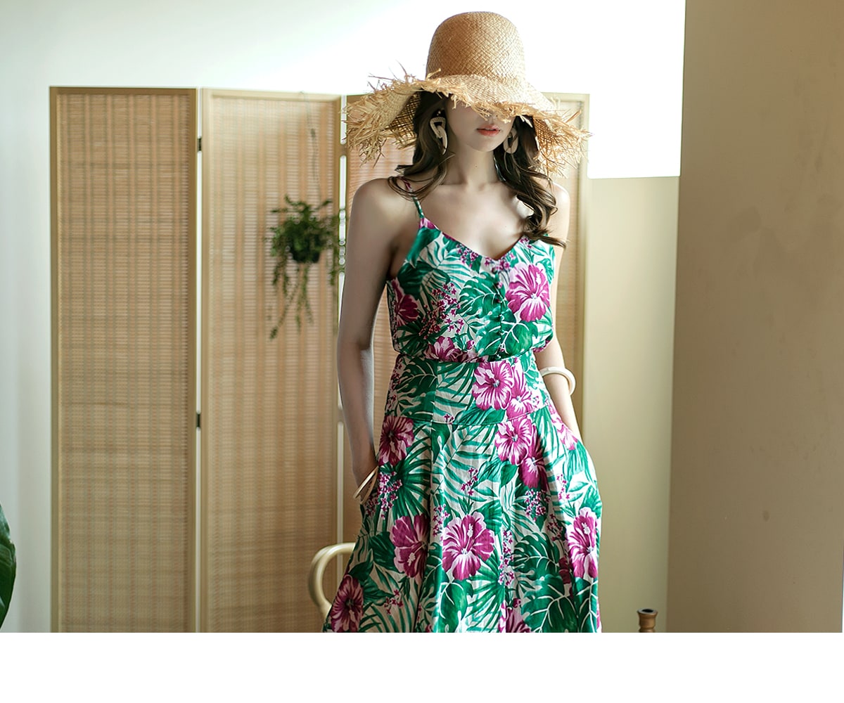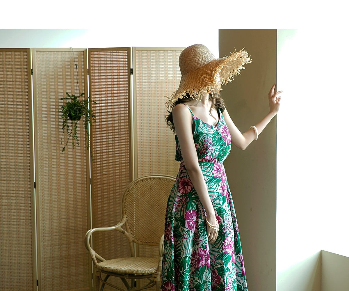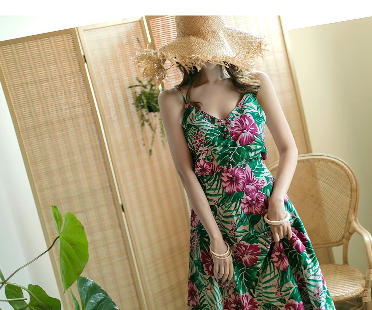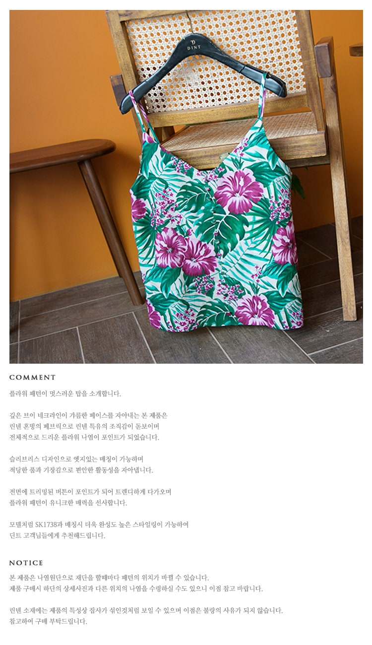 E1777 리프 네이처 슬리브리스 린넨 탑 Beige mix