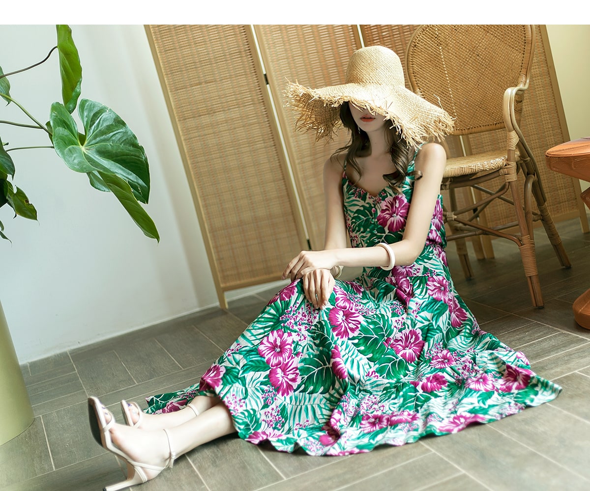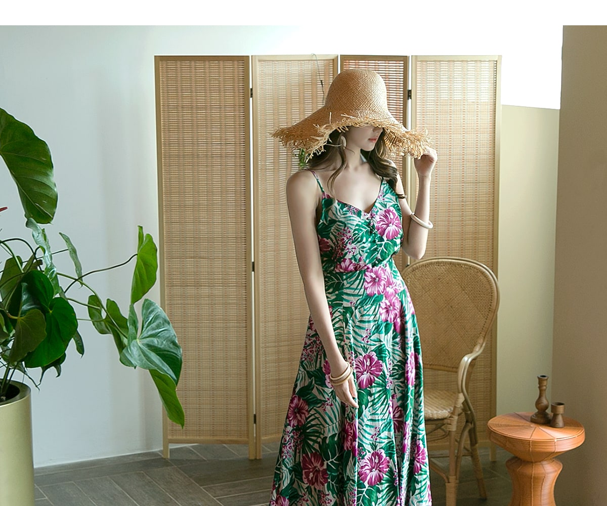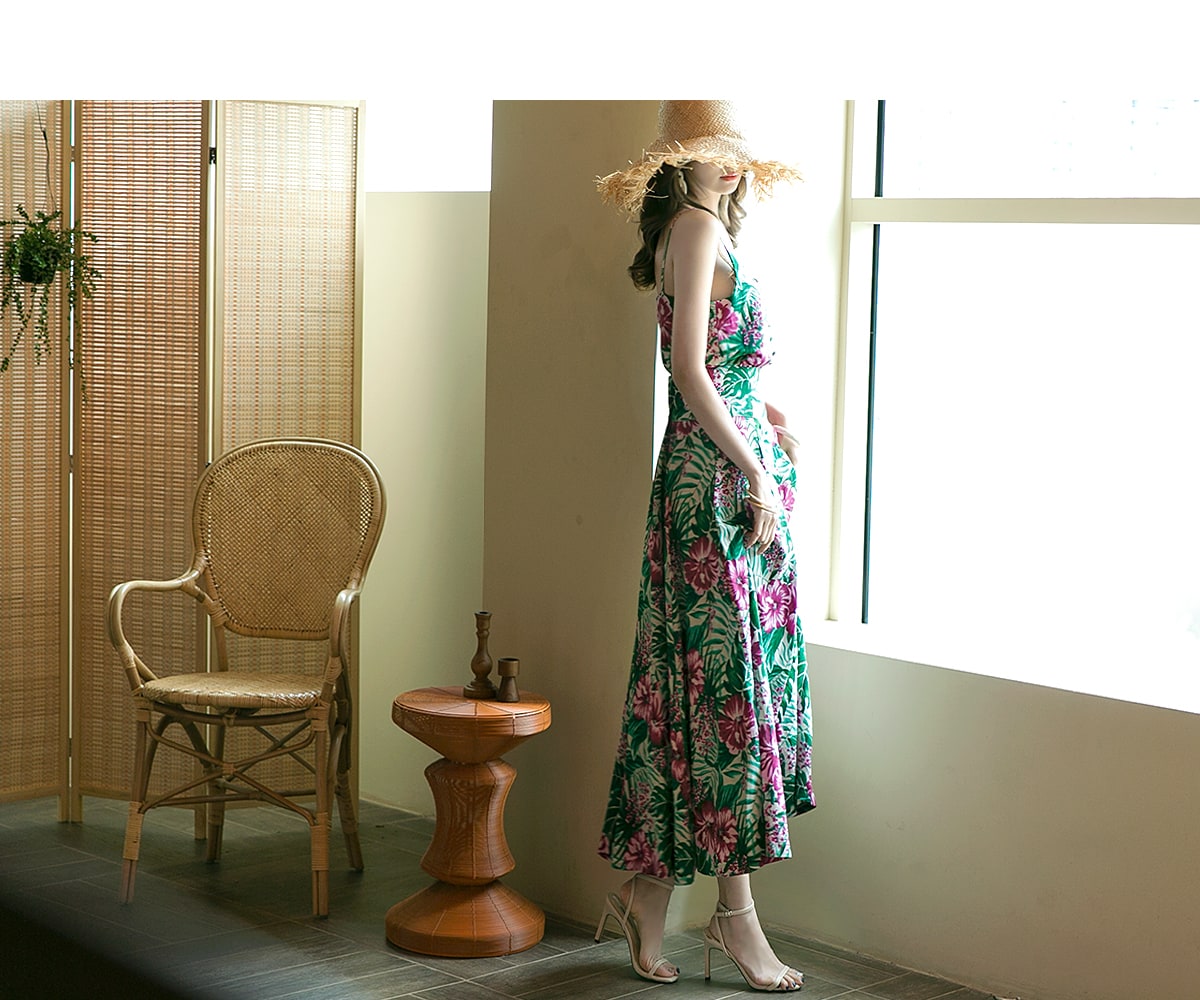 E1777 리프 네이처 슬리브리스 린넨 탑 Beige mix